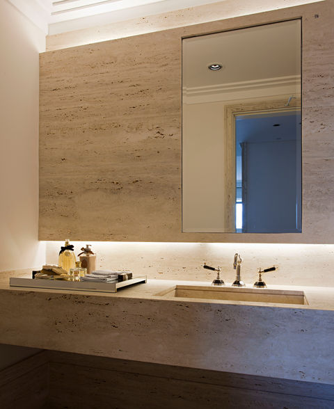 Espaços abertos e uma base neutra foram o ponto de partida para este apartamento no Itaim. Os interiores apresentam uma arquitetura contemporânea, onde os destaques são a grande porta de espelho do hall social e o painel em madeira ebanizada do home.
